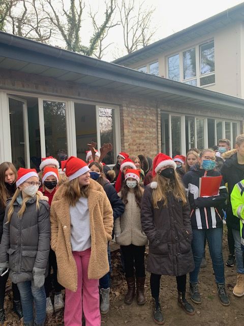 Der Pandemie zum Trotz, wollten wir auch in diesem Jahr unbedingt wieder unser traditionelles Weihnachtssingen veranstalten. Daher haben wir uns, Blechbläser, Chor, Band, und Singende, den Umständen entsprechend im Freien zum Musizieren vor dem Kunsthaus versammelt. Regelkonform und in deutlich kleinerem Rahmen, konnten wir uns somit fröhlich und mit einem Weihnachtslied auf den Lippen in die Weihnachtsferien verabschieden!