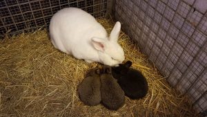 | 2017 wurden 28 Kaninchen geboren | 1 Hahn (Otto) und 3 Hühner (Deutsches Reichshuhn) 4 Bioeihühner |