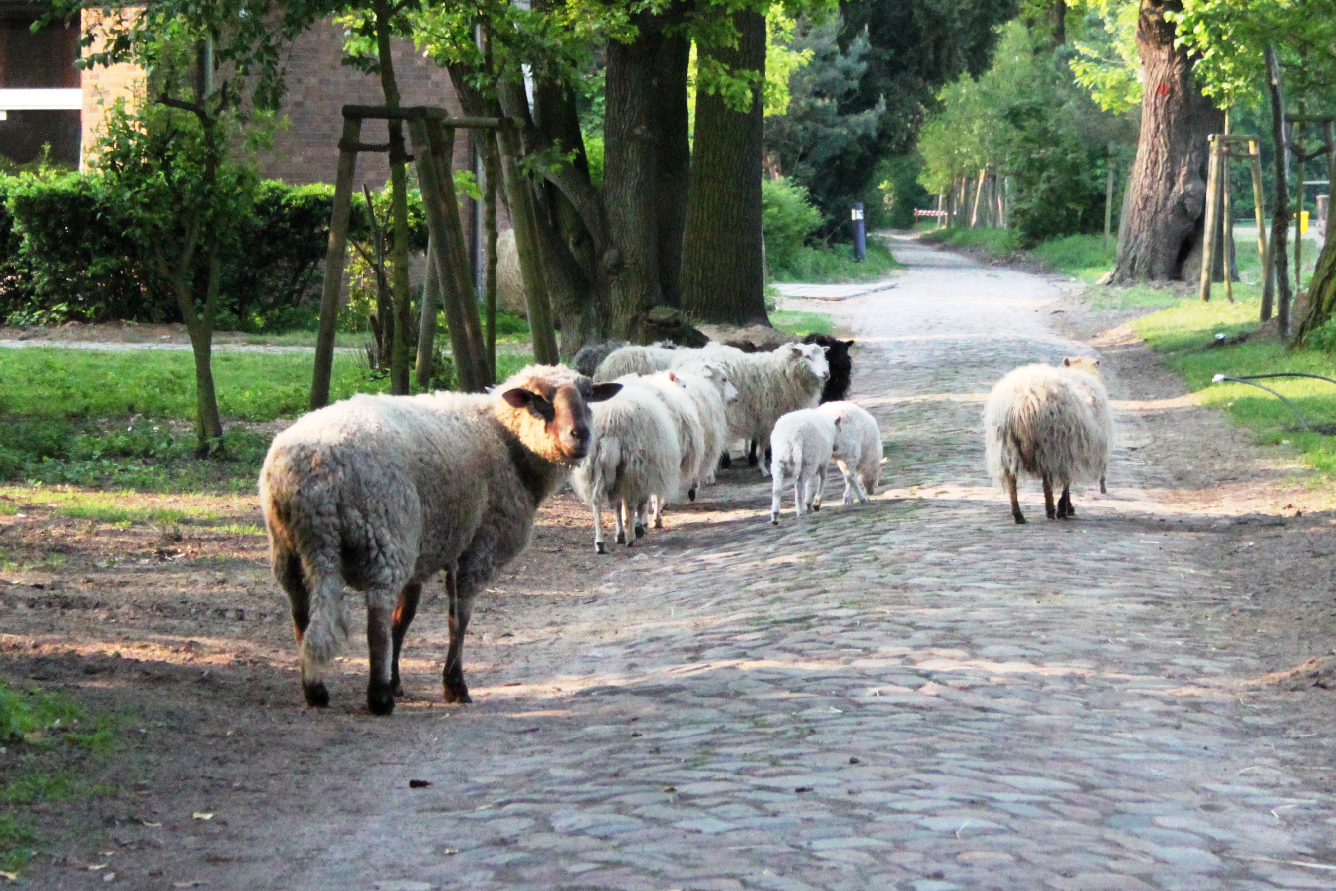 1 geschecktes Bergschaf 1 Buntes Bentheimer Landschaf 4 Rauhwollige Pommersche Landschafe |
